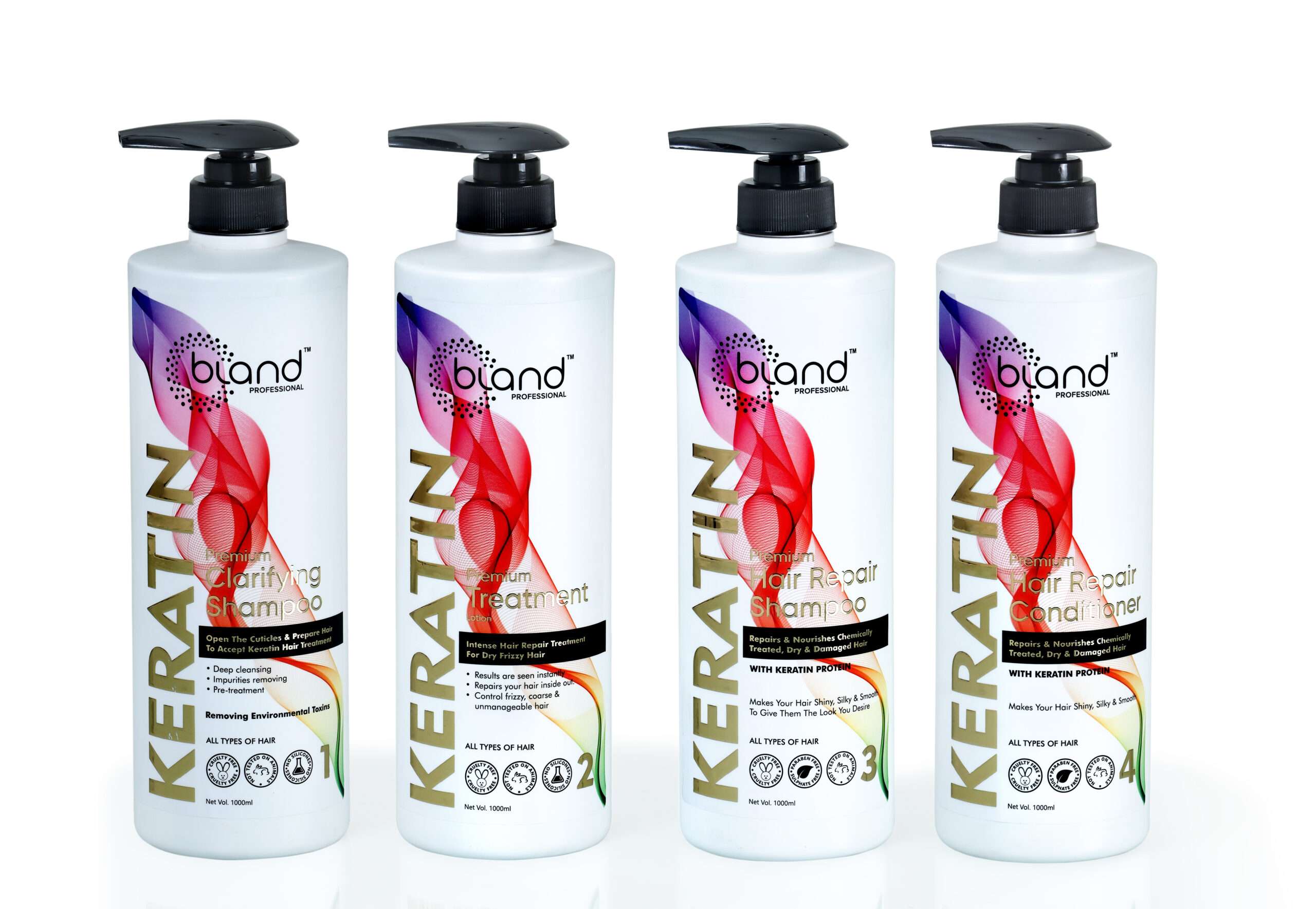 A complete keratin-based smoothing system that deeply cleanses, repairs, strengthens, and smooths dry, frizzy, and damaged hair for long-lasting silky, glossy results.